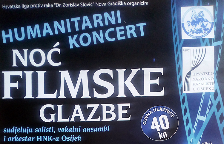 Da bi se prikupila potrebna sredstva Hrvatska liga protiv raka „Dr.Zorislav Slović“ organizira humanitarni koncert „NOĆ FILMSKE GLAZBE“ u izvedbi HNK-a Osijek (solisti,vokalni ansambl i orkestar, ukupno 65 izvođača). Koncert će se održati 16.veljače 2019. god. U Sportskoj dvorani Elektrotehničke i ekonomske škole Nova Gradiška, ul.Ljudevita Gaja 24. Prikupljena sredstva od donacija i karata namijenjena su za kupnju UZV-e sonde.