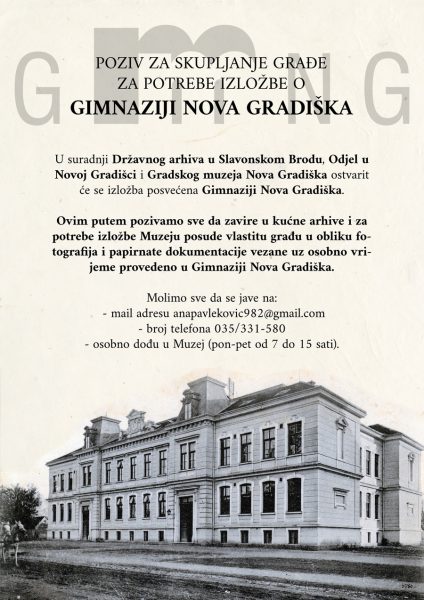 Miroslav Pišonić, ravnatelj Gradskog muzeja Nova Gradiška, poziva sve da zavire u kućne arhive i za potrebe izložbe Muzeju posude vlastitu građu u obliku fotografija i papirnate dokumentacije vezane uz osobno vrijeme provedeno u Gimnaziji Nova Gradiška.