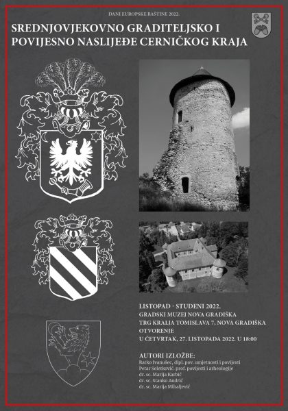 Povodom obilježavanja Dana europske baštine u Republici Hrvatskoj u 2022.godini, na inicijativu Konzervatorskog odjela u Slavonskom Brodu, uz podršku i pokroviteljstvo Općine Cernik, u suradnji s Gradskim muzejom Nova Gradiška i Hrvatskim institutom za povijest, Podružnica za Slavoniju, Srijemi Baranju iz Slavonskog Broda organizirana je popratna konzervatorska izložba s temom Srednjovjekovno graditeljsko i povijesno nasljeđe cerničkoga kraja.