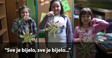 -Djeca su na radionici izrađivala “snježne” pahuljice od kokica i tako još jednom pokazala svoju maštovitost i radost susreta. Družila se i svojim smijehom ispunjavala prostor naše knjižnice. Kao i uvijek rezultate svoga rada ponosno su izložili u knjižnici i s oduševljenjem isticali svoje izrađene prekrasne snježne pahuljice – navodi voditeljica knjižnice Jasminka Klarić.
