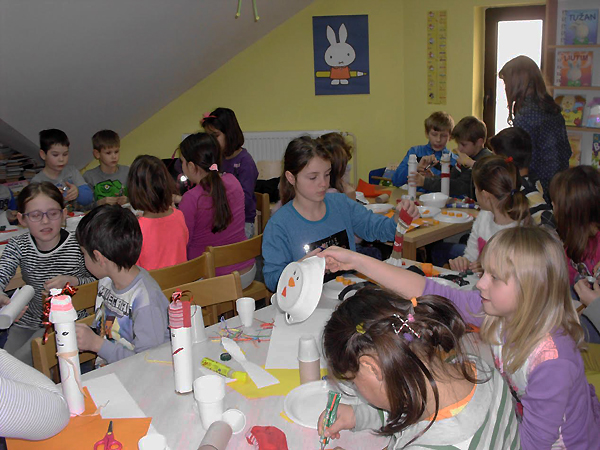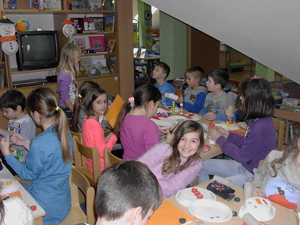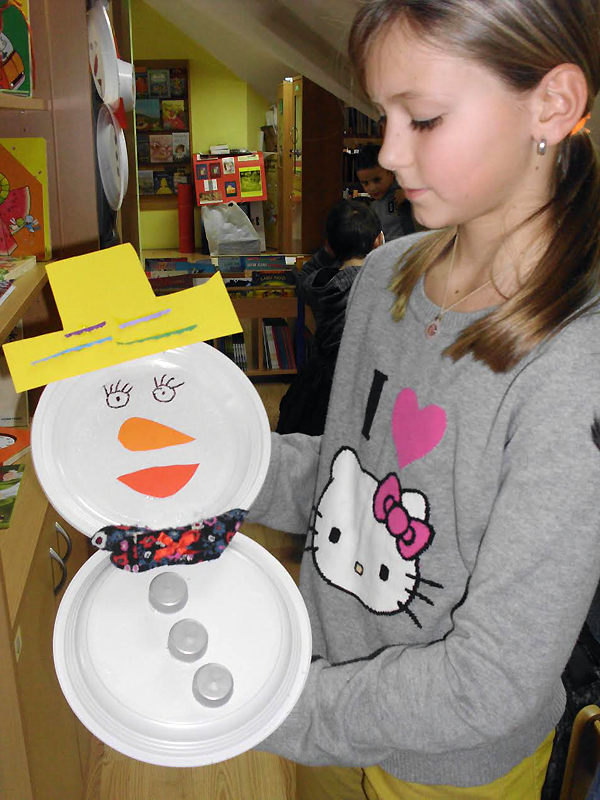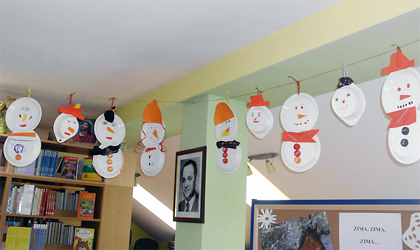 Naime, učenici od 1.-4. razreda PŠ Gornji Bogićevci i njihove učiteljice Iva Franić i Spomenka Bošnjaković bili su gosti naše knjižnice na još jednoj kreativno-likovnoj radionici koju je organizirala i pripremila voditeljica knjižnice Jasminka Klarić. Na radionici simboličnog naziva „BIJELA ZIMA I SNJEGOVIĆI“ primjerenoj za ovo doba godine i snijeg koji je zabijelio cijele  naše Gornje Bogićevce,  djeca su izrađivala SNJEGOVIĆE od raznih materijala vate, vine,  čarapa ispunjenih rižom, kartona, plastičnih čaša i tanjura, rola papira, čepova, ukrasni trakica…Inspirirani pjesmom Jadranke Čunčić – Bandov „ Snjegoviću, pokraj puta zašto stojiš bez kaputa?“dječjim rukama, kreativnošću i ljubavlju nastali su razni SNJEGOVIĆI koji krase prostor naše knjižnice. (Knjižnica „Grtigor Vitez“ Gornji Bogićevci“