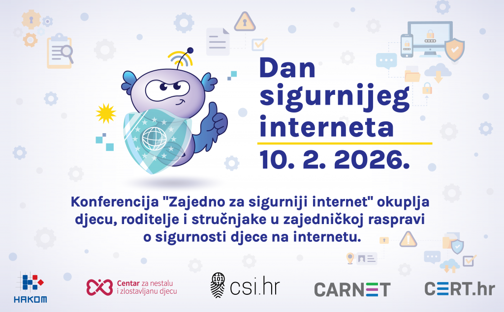 Povodom obilježavanja Dana sigurnijeg interneta, u Zagrebu će se, 10. veljače 2026. godine održati konferencija posvećena sigurnosti djece i mladih u digitalnom okruženju „Zajedno za sigurniji internet“, u organizaciji HAKOM-a, CARNET-ovog Nacionalnog CERT-a i Centra za sigurniji internet, koji djeluje u sklopu Centra za nestalu i zlostavljanu djecu.
