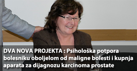 Drugi projekt je prikupljanje novca za kupnju aparata za dijagnozu karcinoma prostate. Obratit ćemo se svim našim subjektima da nam pomognu u kupnji tog aparata. Imamo aparat za ultrazvuk ali nam nedostaje sonda da kompletiramo dijagnostiku kako građani ne bi morali putovati u druge gradove. Treba nam 50.000 kuna i očekujem de ćemo do kraja godine prikupit potreban novac.