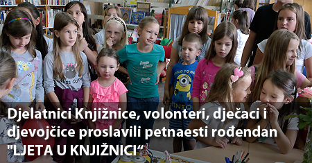 Ovom radionicom simbolično je obilježen i proslavljen i 15.-ti rođendan “LJETA U KNJIŽNICI”, kako navodi prof. Biljana Dakić, ravnateljica Gradske knjižnice, tradicionalne i nagrađivane manifestacije omiljene među djevojčicama i dječacima , sada već brojnih generacija. Bilo je to danas lijepo završno druženje i oproštaj uz rođendansku tortu do ljeta naredne godine. Djelatnici Gradske knjižnice i volonteri koji su ove godine na Dječjem odjelu organizirali i vodili radionice zaslužuju pohvale jer su još jodno ljeto iskoristili da na radionicama okupe djecu i osmisle im kreativno ljetno druženje.