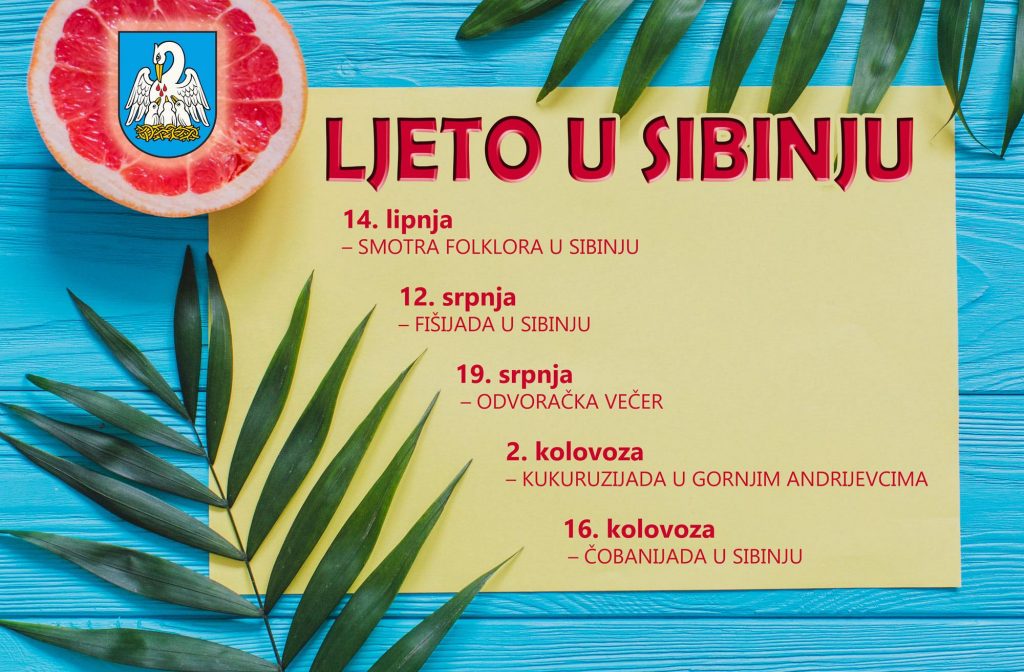 Kao i prethodnih godina, manifestaciju službeno otvara Smotra folklora “Oj Sibinju lipo selo naše”, u režiji lokalnog KUD-a Tomislav, u subotu, 14.lipnja. Na druženju pjesme i tradicijske baštine, na smotri će, uz domaćine, nastupiti i kulturno-umjetnička društva iz Garčina, Grgurevića, Vrbja, Požege, Valpova, Pocrkavlja, kao i dragi gosti iz Odžaka u Bosni i Hercegovini. Smotru će, kao i uvijek, zaključiti etno revija Tajane Balaž Jurišić, a potom slijedi provod do jutra uz koncert Slavonskih lola. Uz bogatu tombolu, kao i pune trpeze eno gastro ponude, navratite li u središnji mjesni park, budite sigurni da ćete se dobro zabaviti. Srpanj je, već tradicionalno, rezerviran za Fišijadu, jednu od najpoznatijih u ovom kraju, gastro priču na kojoj se, svake godine, zahvaljujući sjajnim domaćinima, pojede gotovo tisuću ‘pola’ šarana i stotine litara fiša, što je recept koji ne treba mijenjati, u što ćete se moći uvjeriti 12.7.
