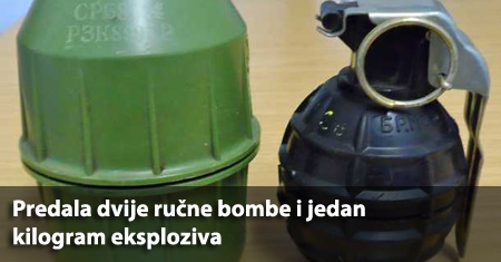 VRBJE, 2. ožujka 2016. – Policijski službenik za protueksplozijsku zaštitu Policijske uprave brodsko posavske je u utorak, 1. ožujka na poziv jedne ženske osobe sa područja općine Vrbje preuzeo dvije ručne bombe i jedan kilogram