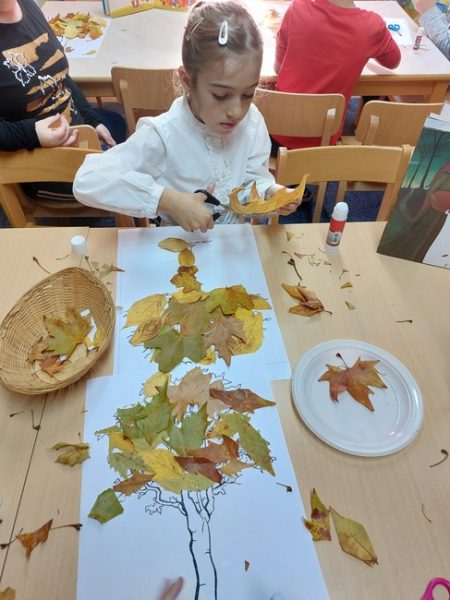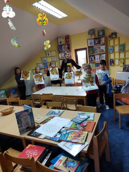 Učenici prvog razreda PŠ Gornji Bogićevci zajedno sa svojom učiteljicom Marijom Štimac Fekete posjetili su našu knjižnicu i sudjelovali u literarno-likovnoj radionici. Sara i Renato pročitali su nam odlomke iz knjiga: Godišnja doba, Učimo o godišnjim dobima i Četiri godišnja doba. Potom su razgovarali o pročitanom tekstu i posvetili radionicu jednom godišnjem dobu u kojem se nalazimo “jeseni” potom je svatko na svoj način izrađivao prekrasne krošnje drveća obojene bojama jeseni, šarolikim jesenskim lišćem.