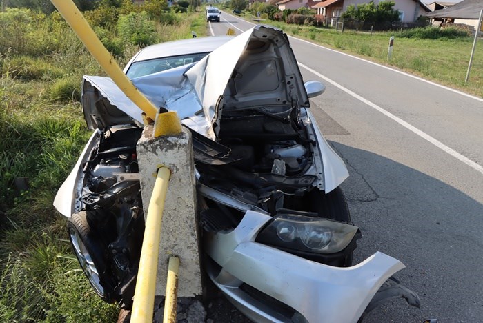 Policijski službenici su utvrdili da je 50-godišnjak upravljajući osobnim automobilom zbog ne držanja strane kretanja prešao na travnatu površinu, te prednjim dijelom automobila udario u smjerokazni stupić i betonsko metalnu ogradu mosta. Alkotestom je u organizmu vozača očitana koncentracija alkohola u iznosu od 3,95 promila (kod sebe nije imao vozačku dozvolu), te je priveden u policijsku postaju i zadržan do otriježnjenja.