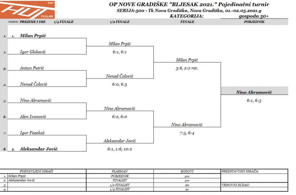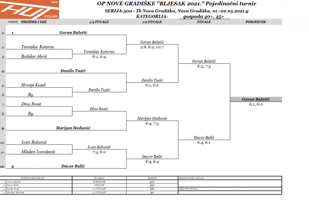 NOVA GRADIŠKA, 4. svibnja 2021. – U subotu 01. svibnja 2021. godine u organizaciji Teniskog kluba „Nova Gradiška“ na teniskim terenima Sportskog centra San Siro u Novoj Gradiški na Slavči odigran je tradicionalni teniski turnir povodom obilježavanja vojno redarstvene akcije Bljesak.
