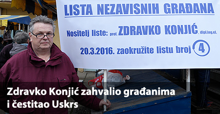 NOVA GRADIŠKA, 22. ožujak 2016. – Zdravko Konjić, nositelj Liste nezavisnih građana osvrnuo se na protekle izbore, zahvalio građanima i čestitao Uskrs.