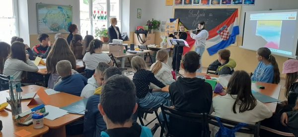 Projektne aktivnosti partnerske škole predstavila je učiteljica Maria Dragia, nekoliko učenica pročitalo je svoje pjesme, a učenica Daria uljepšala je predstavljanje zvukom tamburice.
