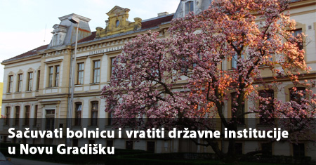 NOVA GRADIŠKA, 29. prosinac 2013. – Pripajanje Opće bolnice Nova Gradiška Općoj bolnici „Dr. Josip Benčević“ u Slavonskom Brodu podigla je na noge građane, političare i zdravstvene djelatnike. Mnogi se slažu da gubljenje identiteta novogradiške bolnice znači još jedan u nizu koraka u gubljenju identiteta Nove Gradiške kao grada. U Novoj Gradiški je, naime, sve manje ustanova i institucija koje jedno naselje čine gradom. Upozorio je na to i gradonačelnik Željko Bigović, na prosvjednom skupu održanom u subotu.