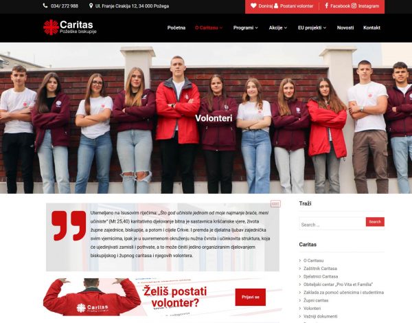 POŽEGA – Ususret Trećoj nedjelji došašća, ujedno i Nedjelji Caritasa, Caritas Požeške biskupije predstavio je  svoju novu internetsku stranicu kojom želi – čuvajući dostojanstvo čovjeka u potrebi, ne uzdižući snagu učinjena dobra, a još manje onih koji to čine – dobru pronaći put do očiju i srca svih ljudi dobre volje.