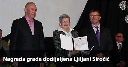 NOVA GRADIŠKA, 11. prosinac 2014. – Grad Nova Gradiška u prigodi Dana grada dodjeljuje javno priznanje NAGRADU GRADA NOVA GRADIŠKA gospođi LJILJANI SIROČIĆ,