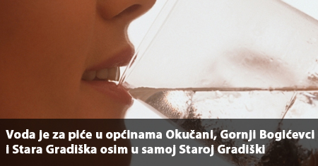 Prema rezultatima analize uzetih uzoraka , voda u općinama Okučani i Gornji Bogićevci u potpunosti odgovara odredbama Zakona o vodi za ljudsku potrošnju, čl. 20 i 21.