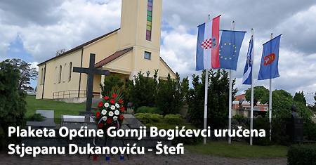 GORNJI BOGIĆEVCI, 16. svibnja 2016. – Bilo je nedjelju i ponedjeljak svečano u Gornjim Bogićevcima. Slavio se blagdan Duhova i obilježavao Dana općine. Jučer je svetu misu u crkvi Duha Svetoga služio fra Ivo Brezović, a kod spomenika poginulim hrvatskim braniteljima i prvom hrvatskom predsjedniku dr. Franji Tuđmanu položeni su vijenci i zapaljene svijeće.