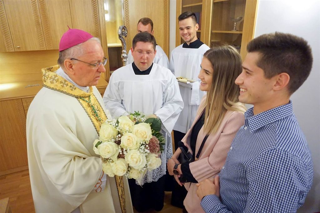U prvoj molitvi koju je izrekao u novoizgrađenom hramu kralj Salomon hvali i slavi Božju veličinu, uvjeren da se ona ne može svesti na hramski prostor i sapeti u njegove zidine. Ovaj mudri kralj bio je svjestan da više nego Bogu, hram treba čovjeku kao mjesto u kojem će pred Bogom moći prepoznati veličinu svoga postojanja, i biti ispunjen iskustvom onostranosti kojoj po Božjem naumu pripada. Na Salomonovo pitanje »Zar će Bog doista boraviti s ljudima na zemlji?« Bog je dao odgovor utjelovljenjem svoga Sina Isusa Krista, po kojem on ne samo da prebiva među nama, nego u nama, kako tvrdi sv. Ivan Evanđelist u prologu svoga Evanđelja, investira u nas svoju milost po kojoj postajemo dionici njegova božanskog života. Stoga nas apostol Pavao u ulomku drugog čitanja iz Prve poslanice Korinćanima s pravom naziva hramom Duha Svetoga, ustvrdio je biskup. U našim crkvama građevinama Isus Krist je prisutan onom svojom ljubavlju na križu koja je pobijedila smrt, te se u središtu naše Katedrale, kao i svake druge crkve nalazi oltar, žrtvenik, na kojem Isus u slavlju svete mise obnavlja svoju ljubav za nas, a mi se po svetoj pričesti izgrađujemo u njegov živi hram.Biskup se potom osvrnuo na evanđeoski ulomak u kojem sv. Luka pripovijeda kako se Isus na putu u Jeruzalem, prolazeći kroz beznačajni grad Jerihon, susreo s bogatim čovjekom niska rasta koji se zvao Zakej, i koji se kao nadcarinik po ondašnjem židovskom poimanju bavio nečasnim poslom ubiranja poreza rimskom caru, i u nastojanju da se što više obogati varao druge ljude. Biskup je ustvrdio kako je Zakej model svih onih koji si materijalnim putem nastoje priskrbiti što viši životni standard, među koje na neki način možemo ubrojiti i one ljude koji napuštaju Hrvatsku i odlaze živjeti i raditi u inozemstvo. Zakejev primjer potvrđuje da nas ne može usrećiti nikakvo posjedovanje materijalnih dobara, nego jedino Bog za čijom prisutnošću čeznemo u dubini svog srca. Biskup je naglasio kako je tu istinu osobito potrebno svjedočiti mladima, jer budućnost našega naroda i Crkve ne ovisi o tome koliko će oni biti bogati, nego kakvi će ljudi postati.