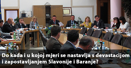 o programskim dokumentima i EU fondovima u novom financijskom programiranju od 2014. do 2020. godine, posljedicama Zakona o područjima posebne državne skrbi, o Zaključku Vlade RH o prihvaćanju karte regionalnih potpora u razdoblju od 2014. do 2020. godine, problemima depozita u poljoprivredi, gospodarenju otpadom na području županija Slavonije i Baranje, učincima i provođenju Nacionalnog plana kliničkih bolničkih centara, kliničkih i općih bolnica u Republici Hrvatskoj u razdoblju 2014. do 2016., te o reformi sustava turističkih zajednica u Republici Hrvatskoj. Iako svi župani nisu bili nazočni na današnjoj sjednici, svaka od pet županija Slavonije i Baranje imala je svoje predstavnike. Svi su suglasni da je ravnomjeran regionalni razvoj jedno od načela Europske unije, a to se na nacionalnoj razini ne provodi zbog nedostatka komunikacije između regionalne i nacionalne razine. Jedan od razloga za takvo stanje, nemogućnost korištenja sredstava koje pruža Europska unija i puno izgubljenih projekata, je i činjenica da nemamo Zakon, podzakonske akte kao niti Strategiju regionalnog razvoja. Ruralni prostor opterećen je ozbiljnim problemima, negativni se trendovi nastavljaju i evidentno je da sadašnja politika nije našla rješenja za nagomilane poteškoće. Unatoč činjenici da je politika ruralnog razvoja najsnažnija i najizdašnija europska politika, Hrvatska je neuspješna pri definiranju programa ruralnog razvoja, a posljedica toga je i slaba iskorištenost europskih sredstava.