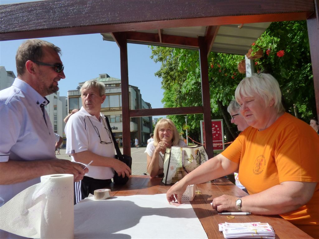Pozdravljajući okupljene Novogradiščane na središnjem gradskom trgu, predsjednica udruge Tereza Grgić je kazala da se, od potrebnih 66.000 kuna na humanitarnom koncertu prikupilo 33.000 kuna, te da očekuje da će se na humanitarnoj utrci i humanitarnoj kazališnoj predstavi (autor Miro Gavran) prikupiti preostala sredstva.