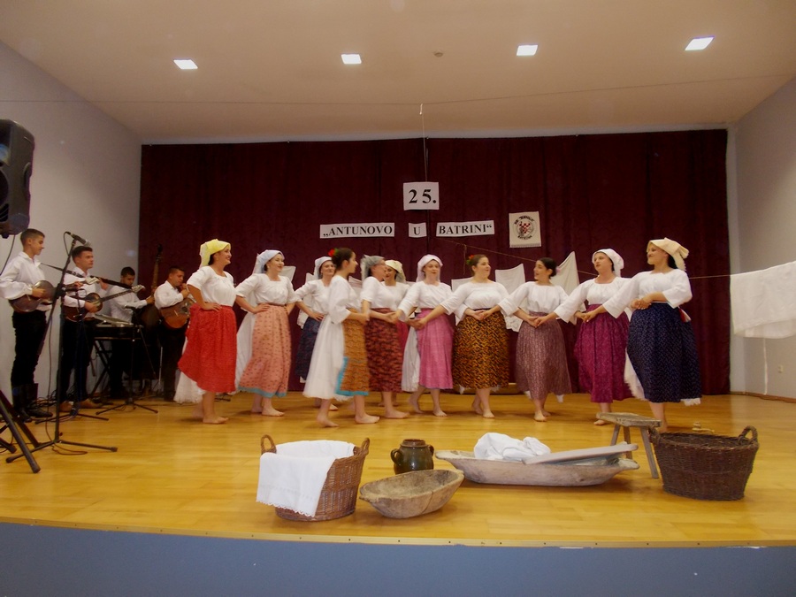 Prikazom pranja rublja uz prigodne napjeve i kola 25. “Antunovo u Batrini” otvorili su domaćini, KUD “Šokadija”, a potom je mješoviti zbor Udruge umirovljenika općine Nova Kapela potvrdio kako godine nisu važne, ako su mladi srce i duša. Pod vodstvom Jasmine Balašković izveli su pjesme “Nije zora ko’ što j’ nekad bila”, “Ustat ću rano ja”, a potom je uslijedio i duhoviti “Penzionerski bećarac” za kojega je stihove napisala voditeljica zbora. Spletom plesova brodskog Posavlja pod nazivom “Ajde kolo da skočimo” predstavili su se članovi KUD-a “Matija Gubec” Slavonski Kobaš, pjesmama “Drumarac” i “Ej lipa Kajo” Muška pjevačka skupina KUD-a “Ivan Filipović iz Velike Kopanice, čiji je počimač Đuro Švaganović na nedavnom natjecanju u Babinoj Gredi proglašen najboljim pjevačem bećaraca. Mlada postava HKUD-a “Harkanovci” donijela je na pozornicu puno veselja i razdraganosti, a ujedno i potvrdila da se naši mladi itekako ponose svojom tradicijom. Izveli su Splet slavonskih plesova u izvornoj harkanovačkoj koreografiji. Šokačka glumačka družina “Matini kripoštoli” iz Donje Bebrine počastili su pučkim igrokazom ” Kad se Bara udavala” autora Zvonimira Toldija i Mate Baboselca. Životnu situaciju, kakva bi se i danas mogla dogoditi, uz izvornu ikavicu sela Odvorci prikazali su na vrlo šaljiv način Marica Grgurević, Irena Matković i Mata Baboselac. Inače, ovaj igrokaz izveden je nedavno i u Sikirevcima na Smotri pučkih igrokaza, koja je dio sadržaja “Brodskoga kola”, najstarije folklorne manifestacije u RH.