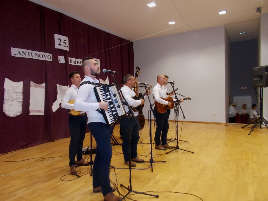 BATRINA – U povodu Dana državnosti KUD “Šokadija” Batrina upriličio je 22. lipnja u HrVAtskom domu u Novoj Kapeli tradicionalnu 25. manifestaciju naziva ” Antunovo u Batrini”. Uz domaćine nastupili su i HKUD Harkanovci, KUD “Matija Gubec” Slavonski Kobaš, Muška pjevačka skupina KUD-a “Ivan Filipović” Velika Kopanica, šokačka glumačka družina “Matini kripoštoli” iz Donje Bebrine, Mješoviti zbor Udruge umirovljenika općine Nova Kapela, kao i dva tamburaška sastava (Grozd, Tkanica) čiji su članovi stasali u KUD-u Šokadija” Batrina.