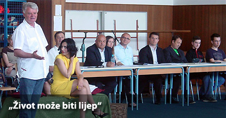 SLAVONSKI BROD, 3. lipanj 2015. – Ravnateljstvo policije, Ministarstva unutarnjih poslova Republike Hrvatske u suradnji s društveno odgovornim subjektima, među kojima je istaknuti partner i Ministarstvo znanosti, obrazovanja i sporta, jučer je u Slavonskom Brodu, predstavilo je i započelo s provedbom interaktivnog preventivnog pilot-projekta univerzalne prevencije pod nazivom „Život može biti lijep“.