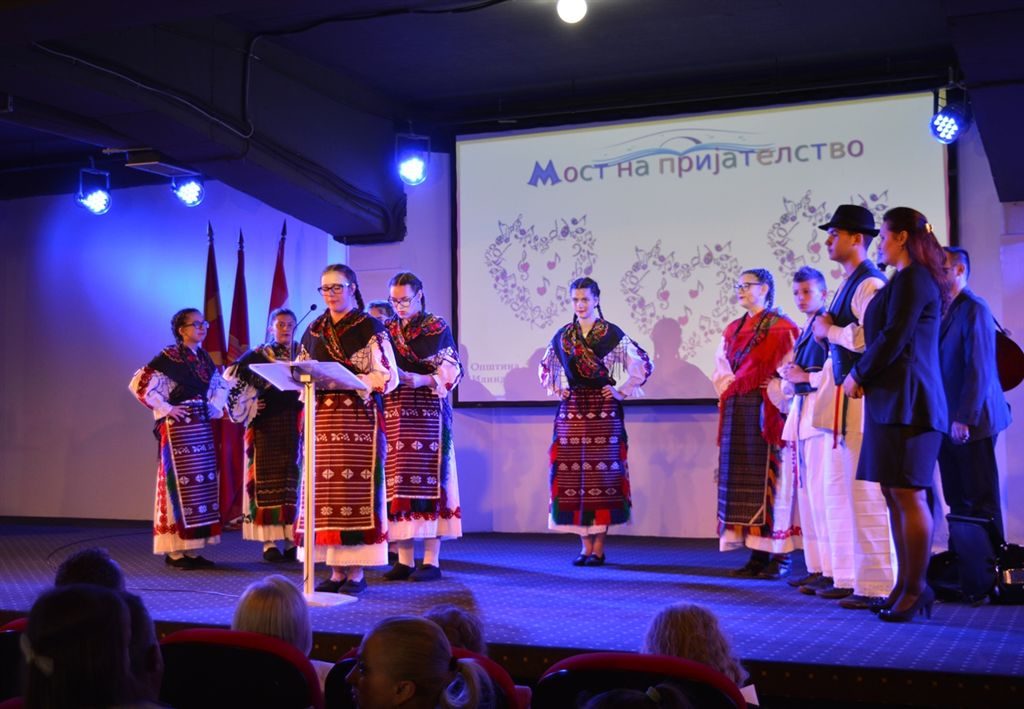 U večernjim satima sudjelovali smo na svečanoj priredbi u Domu kulture koju su za nas pripremili učenici uz vodstvo učitelja. Na samom početku načelnik Žika Stojanovski pozdravio je sve prisutne te nama gostima poželio dobrodošlicu i ugodan boravak u Ilindenu. Prisutnima se obratila ravnateljica škole Dušanka Krstevska i ravnatelj naše škole Tihomir Batalo koji je poslao pozdrave načelnika Zlatka Age u nadi da će se suradnja među općinama i školom još više razvijati. Obostrana je ocjena da se uspostavljena međunarodna suradnja treba nastaviti jer rad na projektnim aktivnostima i razmjena iskustava doprinosi poboljšanju kvalitete odgoja i poučavanja. Među gostima na priredbi prisutnima su se obratile i veleposlanica Republike Hrvatske u Republici Makedoniji – Njena Ekscelencija gđa. Danijela Barišić te gđa. Ljerka Toth Naumova ispred Zajednice Hrvata u Makedoniji koja je promovirala svoju zbirku pjesama Nevidljiva vrata.