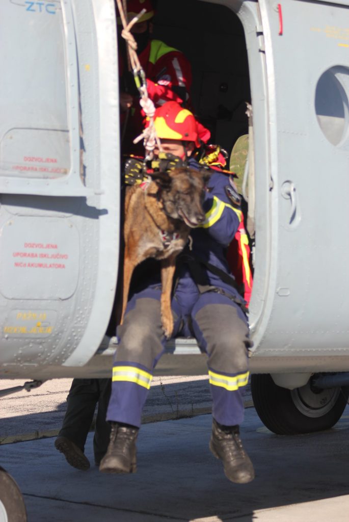 Ovim su se treningom vatrogasci – vodiči sa psima osposobili za letenje helikopterom, ulazak i izlazak iz helikoptera te za spuštanje vatrogasaca sa psima iz helikoptera. Navedeno su osposobljavanje provodili instruktori Državne vatrogasne intervencijske postrojbe na čelu sa njihovim zapovjednikom Joškom Grančićem.
