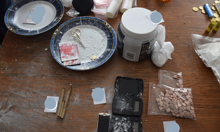 Pronađeno je 684,64 grama droge marihuana, 572,43 grama droge amfetamin, 163 tablete droge MDMA, 9 grama droge kokain, 277,05 grama bijele praškaste tvari nepoznatog kemijskog sastava, tri digitalne vage s tragovima droge i jedan mobitel s pripadajućom SIM karticom i 3 lovačke patrone cal. 20