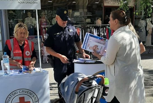 NOVA GRADIŠKA, 29. srpnja 2023. – U zajedničkoj suradnji policijskih službenika Policijske postaje Nova Gradiška i djelatnika Hrvatskog crvenog križa, jučer (28. srpnja) je u Novoj Gradiški održana preventivna aktivnost s ciljem osvješćivanja roditelja ili skrbnika na opasnosti od izlaganja suncu i ostavljanja djece u automobilima koji se vrlo brzo pregriju pri visokim temperaturama. Čak i kraći boravak djeteta u pregrijanom automobilu može prouzročiti tragične posljedice.