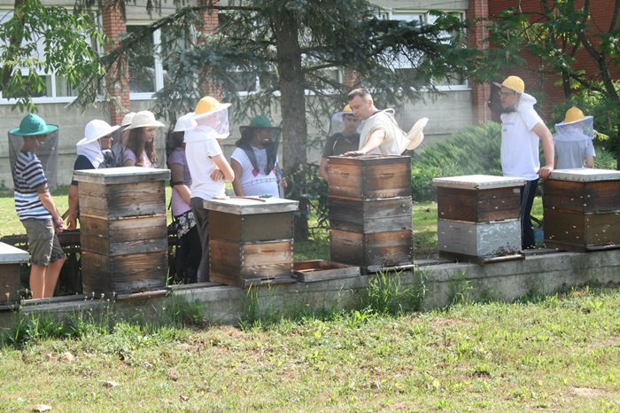 Velika Kopanica – Dana 08. lipnja 2018. godine na pčelinjaku OŠ „Ivan Filipović“ u Velikoj Kopanici uspješno je završen ovogodišnji projekt „Prevencijom do zdravlja kroz pčelarstvo kao izvannastavnu aktivnost“. U ovom dijelu projekta sudjelovalo je 30 učenika sa svojim nastavnicima i ravnateljima iz 7 osnovnih škola istočnog dijela Županije. Ravnatelj škole u Velikoj Kopanici gosp. Željko Flidr, u uvodnom dijelu izrazio je dobrodošlicu svim učenicima, a nakon toga policijski službenik Policijske postaje Vrpolje, Mirko Čorak učenike je upoznao sa radom pčelarske sekcije „Pčela“, od njenog osnutka 1975. godine pa sve do danas. Učenici su imali prilike vidjeti određene tipove košnica sa kojima se pčelarilo nekada, kao i košnice koje se koriste danas.