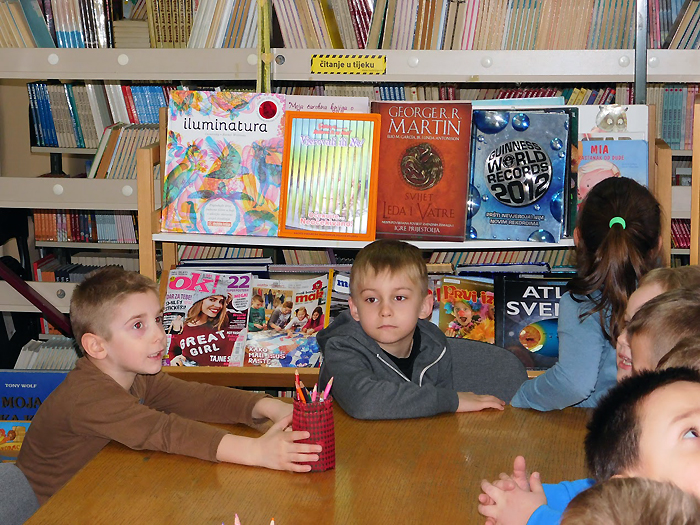 Danas je održan vedri susret  knjižničara i malih “antuntunovaca” i “antuntunovki” iz starijih  grupa „Jabučice“ i Kruškice“ i njihovih odgajateljica  iz  Dječjeg vrtića. Pričalo se o Grigoru Vitezu i njegovim  pjesmama.