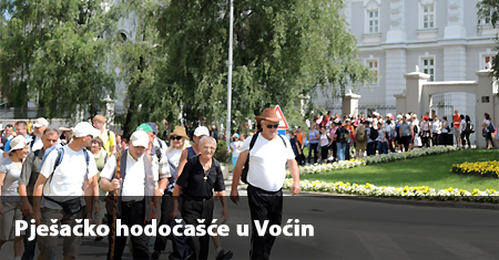 POŽEGA, 21. kolovoza 2014. – U jutarnjim satima 20. kolovoza, iz posavskog dijela Požeške biskupije krenuli su hodočasnici pješaci u Voćin, najbrojniji iz Davora. Putem su im se pridružili pješaci iz Nove Kapele, Kuzmice i Požege te su se u požeškoj crkvi sv. Lovre, zaštitnika biskupije okupili s drugima, među kojima je i skupina autobusom pristiglih Davoraca, gdje su sudjelovali na slavlju hodočasničkog blagoslova koji je predvodio rektor crkve Robert Mokri.