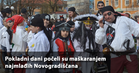 U pokladnoj povorci bilo je 18 pokladnih skupina sa oko 600 djece. Do središta grada došli su predvođeni Gradskom glazbom, mažoretkinjama, i plesačima Plesnog studija Marine Mihelčić. Na središnjem trgu pozdravila ih je, zajedno s okupljenim Novogradiščanima, Verica Lukačević, predsjednica Društva „Naša djeca“ koje je i ove godine, zajedno s OŠ „Mato Lovrak“, bilo uspješan organizator dječjeg pokladnog dana. Zahvalila se i donatorima i sponzorima pekarnicama „Jergović“ i „Anton“ te Anti Kolinskom.
