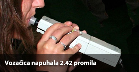 Dana 4. listopada, oko 21.35 minuta, u Slavonskom Brodu, u Ulici A. Šenoe, dogodila se prometna nesreća s materijalnom štetom u kojoj je sudjelovala 40-godišnja vozačica, a u čijem organizmu je alko testom očitana koncentracija alkohola u iznosu od 2.42 promila. Naime, 40-godišnjakinja je upravljala osobnim automobilom BMW pod zabranom, te je udarila u parkirani Ford Focus (pričinivši materijalnu štetu), koji se od udara u daljnjem kretanju naslonio na ispred parkirani Opel (nije bilo oštećenja). Vozačica je potom otišla sa mjesta prometne nesreće, a nije vlasniku oštećenog vozila ostavila podatke o sebi i vozilu, no policijski službenici su je ubrzo pronašli. Vozačica kod sebe nije imala vozačku dozvolu. Alkoholiziranu 40-godišnjakinju su zadržali u policiji do otriježnjenja te protiv nje dostavljaju odgovarajuće prijave prekršajnom sudu u Slavonskom Brodu.