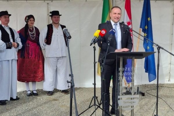 Potpredsjednik Vlade Republike Hrvatske i ministar poljoprivrede, šumarstva i ribarstva David Vlajčić jučer (19.2.2026.) je, zajedno sa županicom Požeško-slavonske županije Antonijom Jozić, položio kamen temeljac Regionalnoga distribucijskog centra za voće i povrće u Požegi.