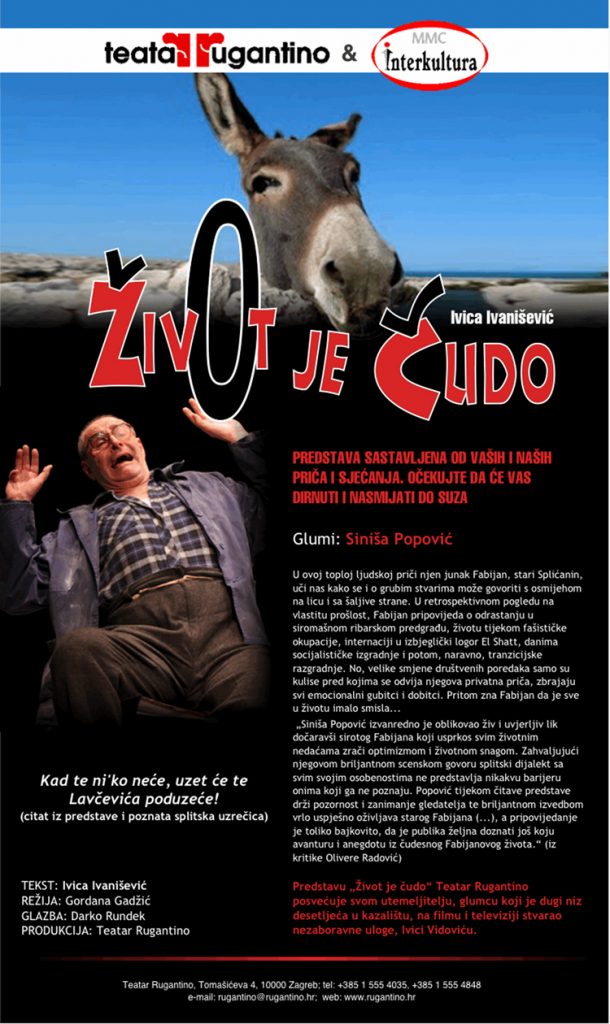Pučko otvoreno učilište M. A. Relković s radošću Vas poziva na monodramu Teatra Rugantino pod nazivom „Život je čudo“ koja će se održati u ponedjeljak, 6. ožujka u 20,00 sati u novogradiškom Domu kulture.
