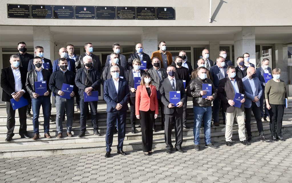 Ministarstvo regionalnoga razvoja i fondova EU danas je uručilo 30 ugovora jedinicama lokalne samouprave, odnosno 26 općina Brodsko-posavske županije, Gradu Novoj Gradiški i Brodsko-posavskoj županiji. Svečanosti potpisivanja nazočila je ministrica Nataša Tramišak, predstavnici općina Brodsko-posavske županije, Grada Nove Gradiške, predsjednik Županijske skupštine i saborski zastupnik Pero Ćosić i župan Danijel Marušić. Župan je, u ime Brodsko-posavske županije, potpisao dva ugovora za projekte „S osmijehom do škole i posla“ i “Modernizacija operacijskih sala u Općoj bolnici Nova Gradiška”