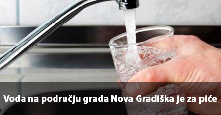 NOVA GRADIŠKA, 21. kolovoza 2014. – Danas, 21. 8.2014., u potpunosti je završena analiza vode uzoraka uzetih u ponedjeljak,18.8.2014., sa cijelog vodoopskrbnog područja Slavče d.o.o.. Prema rezultatima analize uzetih uzoraka , voda na području grada Nova Gradiška u potpunosti odgovara odredbama Zakona o vodi za ljudsku potrošnju, čl. 20 i 21.