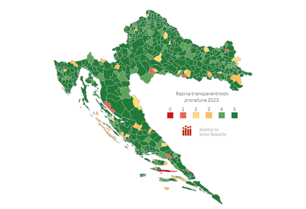 Prosječna proračunska transparentnost svih hrvatskih županija, gradova i općina – izražena brojem ključnih proračunskih dokumenata objavljenih na njihovim mrežnim stranicama – iznosi 4,6 od mogućih 5. Prosjek županija je 5, gradova 4,8, a općina 4,5. Riječ je o odličnom rezultatu, no još uvijek jedna općina nije objavila nijedan od traženih pet dokumenata; 1 županija, 19 gradova i 99 općina nisu objavili sva četiri dokumenta koje su po zakonu obvezni objavljivati; a 1 grad i 51 općina nisu objavili jedan proračunski dokument koji im je Ministarstvo financija preporučilo objavljivati.