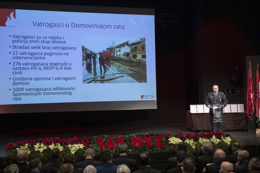 ZAGREB, 21. prosinca 2021. – Jučer je u Zagrebu održana svečanost povodom 145 godina Hrvatske vatrogasne zajednice, krovne organizacije hrvatskog vatrogastva. Proslavi su prisustvovali najviši državni dužnosnici: predsjednik Republike Hrvatske Zoran Milanović, predsjednik Vlade Republike Hrvatske Andrej Plenković, potpredsjednik Vlade i ministar hrvatskih branitelja Tomo Medved, potpredsjednik Vlade i ministar unutarnjih poslova Davor Božinović, ministrica poljoprivrede Marija Vučković, glavni ravnatelj policije Nikola Milina, zapovjednik Zapovjedno-operativnog središta glavnog stožera Oružanih snaga Republike Hrvatske brigadni general Ivan Turkalj, ravnatelj Ravnateljstva civilne zaštite Damir Trut, posebni savjetnik predsjednika Vlade za poslove obrane Damir Krstičević, državni tajnik u Ministarstvu turizma i sporta Tomislav Družak, glavni vatrogasni zapovjednik Slavko Tucaković, predsjednik Predsjedništva Hrvatske vatrogasne zajednice Ante Sanadera, počasni predsjednik Hrvatske vatrogasne zajednice Franjo Gregurić te počasni zapovjednik Vinko Pošta, kao i predstavnici županijskih vatrogasnih organizacija.