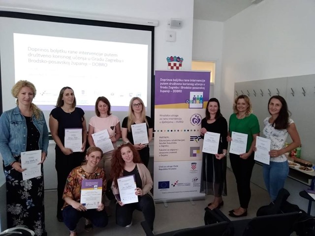 SLAVONSKI BROD – Projekt „Doprinos boljitku rane intervencije putem društveno korisnog učenja u Gradu Zagrebu i Brodsko-posavskoj županiji – DOBRO” provodi Hrvatska udruga za ranu intervenciju u djetinjstvu (HURID) u partnerstvu sa Edukacijsko-rehabilitacijskim fakultetom Sveučilišta u Zagrebu i Fakultetom za odgojne i obrazovne znanosti Sveučilišta J.J. Strossmayera u Osijeku (aktivnosti se provode na dislociranom studiju u Slavonskom Brodu).