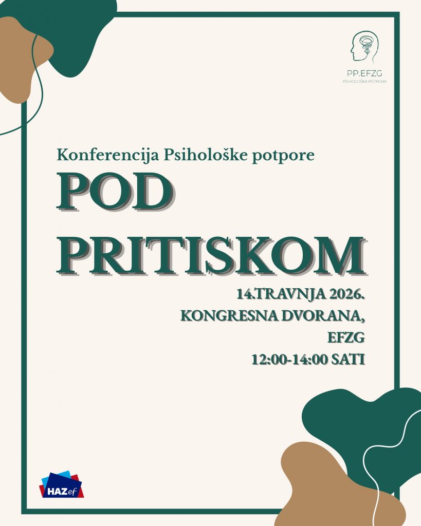 Za uspješnu poslovnu karijeru važno je i upoznati strukturu međuljudskih odnosa na radnom mjestu, načine nošenja s pritiskom kao i usavršiti komunikacijske vještine potrebne za zdravo okruženje. Upravo o tome govori konferencija “Pod pritiskom”, uz stručne paneliste i korisnu radionicu imat ćete priliku steći izuzetno cijenjeno znanje koje je ključno na tržištu rada.
