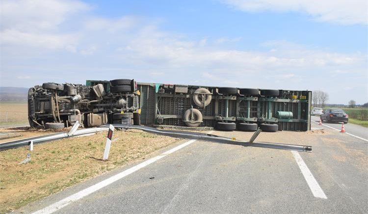 NOVA GRADIŠKA, 1. travnja 2021. – Jučer u 10.55 sati, na autocesti A3 Bregana-Lipovac, kod Rešetara, došlo je do pucanja pneumatika na teretnom automobilu hrvatskih registracijskih oznaka, kojim je upravljao, a koji se kretao južnom kolničkom trakom autoceste A3 od zapada u smjeru istoka. Uslijed pucanja pneumatika došlo je do prevrtanja vozila, rasipanja prevoženog tereta, udara u metalnu ogradu te prelaska na sjevernu kolničku traku, gdje se i zaustavio.