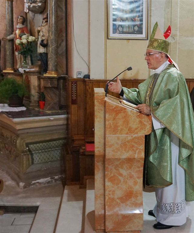 U homiliji biskup je podsjetio kako na svima razinama našeg ljudskog života postoje pravila kojih se trebamo držati da bismo mogli biti organizirano i uspješno društvo. Za primjer je naveo ulazak Hrvatske u Europsku uniju koji je bio povezan s prihvaćanjem određenih zakona, kao i povlačenje novca iz europskih fondova koje je uvjetovano poštivanjem određenih pravila sve do najmanjih pojedinosti. Povezao je to s naviještenim svetim čitanjima, rekavši kako postoje pravila koja je Bog upisao u našu savjest kojih se trebamo držati da bismo postali Božjim saveznicima i dionicima one punine života za koju nas je Bog stvorio. Istaknuo je Isusovu zabrinutost za one ljude koji govore o tim pravilima na izvanjskoj razini a to nema pokriće u iskrenosti njihova srca, nego su sastavni dio prijetvorne igre za potrebe vlastitih društvenih samopotvrđivanja. Biskup je istaknuo kako su se roditelji Marinović oduprli općem mnijenju u našem društvu s obzirom na brak i obitelj, osluškivali Boga u svojoj savjesti te su još jednim rođenjem svoga djeteta posvjedočiti da su hrabri Božji suradnici u prihvaćanju novog života. Potaknuo je vjernike da mole kako u njima ne bi prevlada taktika zla i sebičnosti u kojoj ostajemo gubitnici, nego surađuju s Bogom, žive po njegovim pravilima upisanima u savjest te u Hrvatskoj bude više života.
