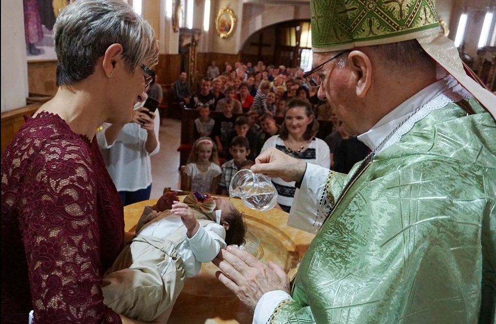 STARO PETROVO SELO – Požeški biskup Antun Škvorčević pohodio je 2. rujna župu sv. Antuna Padovanskog u Starom Petrovom Selu i predvodio središnje nedjeljno euharistijsko slavlje tijekom kojega je krstio Marka, šesto dijete Mate i Antonije Marinović. Na početku slavlja pozdrav i zahvalnost biskupu za pohod Župi izrazio je župnik Ivan Nikolić, spomenuvši značenje rođenja šestog djeteta u obitelji Marinović usred demografske krize u Hrvatskoj. Zahvalivši za župnikovu dobrodošlicu, biskup Antun je rekao kako život nije ljudski proizvod, nego Božji dar na kojem supružnici surađuju svojom žrtvom i ljubavlju. Čestitao je roditeljima Marinović što su po šesti puta postali dionicima Božje stvarateljske moći te primili u život maloga Marka. Zahvalio im je na tom opredjeljenju te rekao kako njihovo dijete u krštenju povjeravamo Isusu Kristu i njegovoj moći jačoj od smrti.
