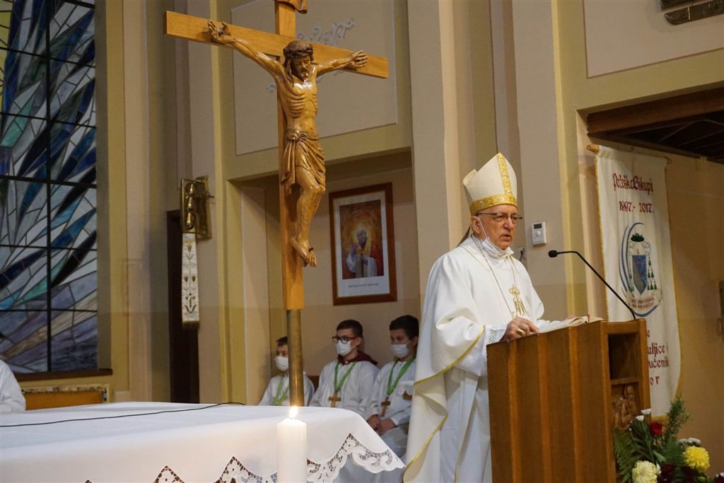 U homiliji biskup je ustvrdio kako u ovo naše vrijeme kad se otkrije nekoga tko je pronevjerio veliki novčani iznos, ili je svojim koruptivnim radnjama prouzročio veliku štetu, to u svim medijima bude udarna vijest o kojoj ljudi danima razgovaraju. Kazao je da se nešto slično dogodilo i u Isusovo vrijeme, kako smo čuli u naviještenom evanđeoskom ulomku. Naime, pročulo se da je neki gospodar dao otkaz svom nepoštenom upravitelju. Biskup je naglasio kako je taj upravitelj bio dvostruko nepošten: loše je vršio svoju službu, a k tome je prije primljenog otkaza sa svog položaja dužnicima svog gospodara smanjio dug i na taj način tuđim imetkom sebi stekao nove prijatelje koji će mu se znati odužiti. I umjesto da zajedno sa svima drugima Isus osudi toga nepoštenog upravitelja, on ga je pohvalio što je snalažljivo postupio. Ali valja dobro razumjeti: nije ga pohvalio zbog toga što je nepošten, nego njegovu lukavost, spretnost, i domišljatost kojom je izveo nečasni čin da bi si osigurao budućnost. Navedeni događaj nije Isusu poslužio kao povod za ogovaranje, nego kako bi svojim suvremenicima i nama danas poručio da je od brige za materijalna dobra ovoga prolaznog svijeta mnogo važnija briga da postignemo Božja vječna dobra, domovinu na nebesima, kako veli sv. Pavao u prvom čitanju. On nas poziva da se oko vječnih dobara zauzetije trudimo od nepoštenih ljudi za prolazna dobra ovoga svijeta. Biskup se prisjetio kako mu je jedan kolega svećenik za vrijeme studija u Rimu u šali znao govoriti da bismo zapravo trebali pohvaliti Zloga zbog njegove marljivosti kojom nas navlači na zlo, i učiti od njega kojom domišljatošću i upornošću treba raditi na svom spasenju. Hajdemo biti marljivije, gorljivije zauzeti za nebeske stvarnosti, i u toj marljivosti činiti samo ono što je dobro, plemenito, pošteno, ono što je Božje, kazao je biskup. Ustvrdio je kako su roditelji Matošević svojim opredjeljenjem za peto dijete posvjedočila zauzetost i žar oko toga da bude s Bogom suradnici života, te je naglasio da su zavedeni oni koji s podsmjehom govore i rugaju se obiteljima s brojnom djecom, misleći da će svojom sebičnošću i lagodnim životom nešto postići. Spomenuvši kako sv. Pavao u današnjem prvom čitanju s osobitom srdačnošću potiče Filipljane, koji su mu veoma prirasli srcu, da ostanu čvrsti u Gospodinu i ne žive kao neprijatelji križa Kristova, biskup je izrazio uvjerenje da je nešto od te Pavlove srdačnosti i čvrstine progovorilo i u roditeljima Matošević, jer im po Apostolovim riječima bog nije trbuh, nisu svoju slavu tražili u bogatstvu, karijeri i moć, već u žrtvi ljubavi kojom služe životu. Kad ljudi razumiju i prihvate svoj život kao put križa, a samim time žrtvu i trpljenje, onda se događa pravi život, i oni postaju pobjednici u kojima je već ovdje započela nebeska domovina, ustvrdio je biskup. Još je rekao kako je preminuli svećenik Marijan kao župnik u Davoru tijekom deset godina naviještao Božju ljubav, očitovanu u Isusovoj žrtvi na križu, te je pozvao sudionike slavlja da zamole Isusovu Majku koju posebno štuju u Davoru neka im pomogne da u njima pobijedi snaga njegova križa i njegove ljubavi, te da bude blagoslovljeno sve ono što obitelj Matošević i druge obitelji s brojnom djecom nastoje činiti u svom opredjeljenju za život.