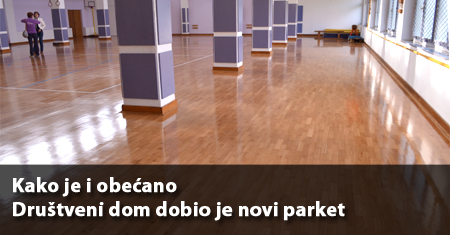 NOVA GRADIŠKA, 21. listopada 2013. – Kao što je 3. listopada obećao predstavnicima Gimnazije gradonačelnik Željko Bigović pobrinuo se da grad Društvenom domu osigura novi parket. Ravnateljica Nada Peleh-Serenčeš