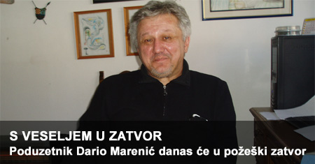 NOVA GRADIŠKA, 22. veljače 2011. – Danas do ponoći novogradiški poduzetnik Dario Marenić biti će požeškom zatvoru. Odrekao se danas prava na žalbu na rješenje o upućivanju u zatvor i zatražio da se rješenje Prekršajnog suda u Novoj Gradiški odmah izvrši.