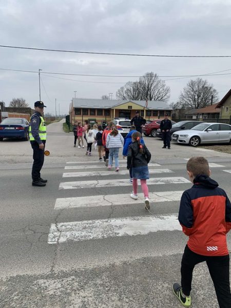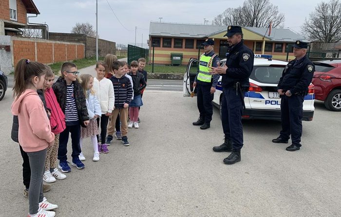 SLAVONSKI BROD, 31.  ožujka 2022. – U nastavku provođenja preventivnih aktivnosti, policijski službenici Postaje prometne policije Slavonski Brod, održali su kratko edukativno predavanje na temu „Sigurno u prometu“, učenicima prvog razreda Osnovne škole „Vladimir Nazor“ u Gornjoj Vrbi.